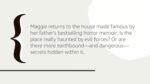 Maggie was too young to remember any of the horrific events that supposedly took place, and as an adult she doesn’t believe a word of her father’s claims. Ghosts, after all, don’t exist. When she inherits Baneberry Hall after his death and returns to renovate the place and sell it, her homecoming is anything but warm. The locals aren’t thrilled that their small town has been made infamous, and human characters with starring roles in House of Horrors are waiting in the shadows.