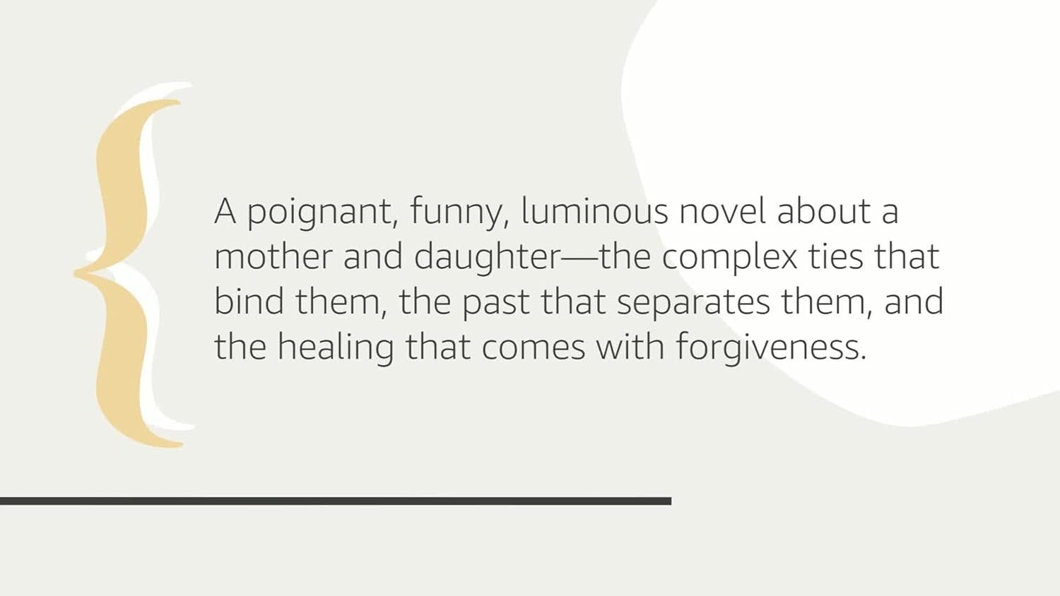 Years ago, Nora Bridge walked out on her marriage and left her daughters behind. She has since become a famous radio talk-show host and newspaper columnist beloved for her moral advice. Her youngest daughter, Ruby, is a struggling comedienne who uses her famous mother as fuel for her bitter, cynical humor. When the tabloids unearth a scandalous secret from Nora’s past, their estrangement suddenly becomes dramatic: Nora is injured in an accident and a glossy magazine offers Ruby a fortune to write a tell-all about her mother. Under false pretenses, Ruby returns home to take care of the woman she hasn’t spoken to for almost a decade.
