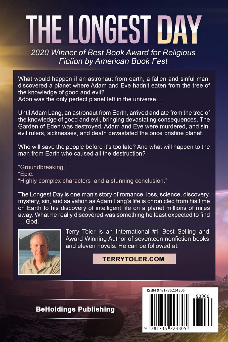 Best-selling author, Terry Toler is a well-written, rising star in literary fiction, with his epic fantasy story, The Longest Day, the first in The Eden Stories series and the one that started the franchise. As much as it is about a strange journey across the stars, it’s also about people, and consequences, both of which are captured expertly. The Longest Day is one man’s story of romance, loss, science, discovery, mystery, sin, and salvation.